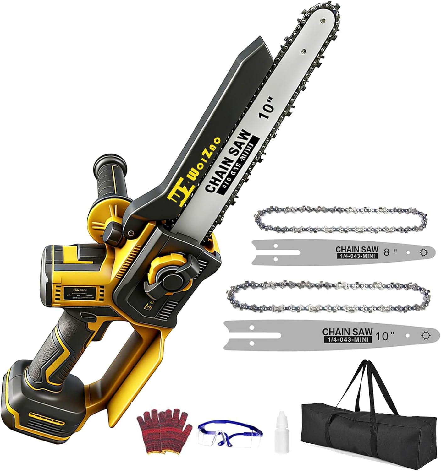 • 【Multi-Protection Safety System】Electric chainsaw cordless Safety Lock: Prevents accidental activation—requires simultaneous pressing of the safety lock and start button to engage; Non-Slip Handle: Ensures a secure grip, reduces fatigue, and enhances control; Low-Recoil Design: Minimizes recoil force for smoother, more controlled cutting.