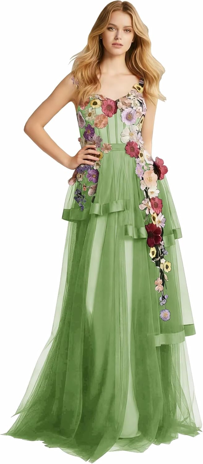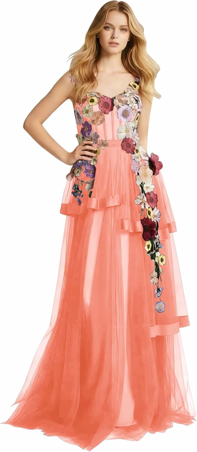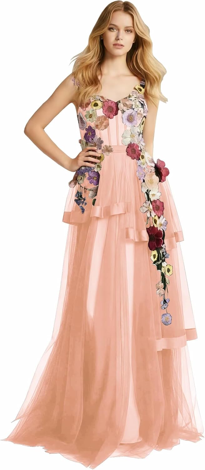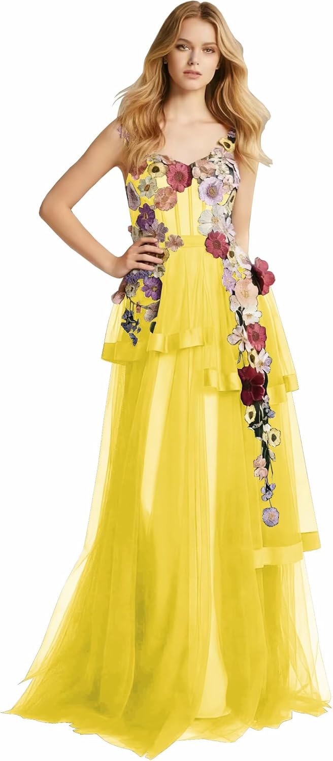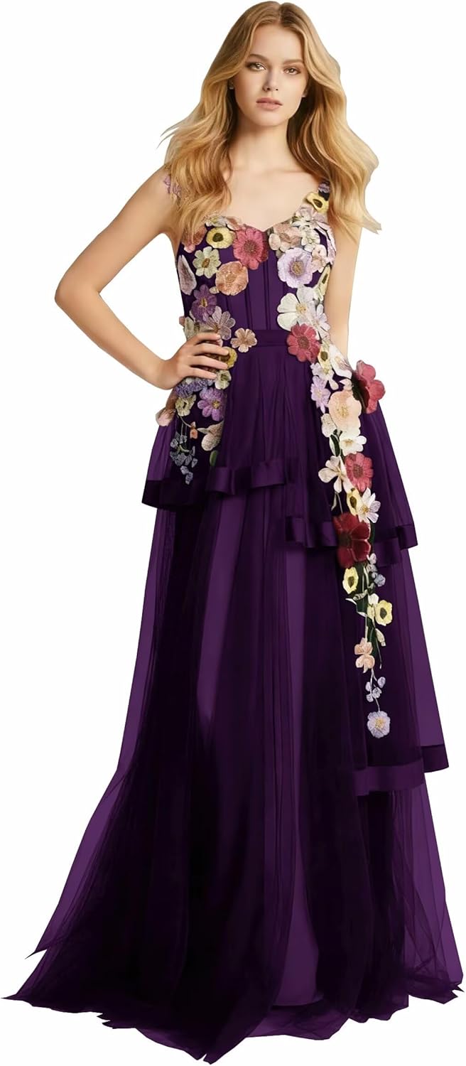 | Embellishment Feature | 3D Floral Applique Prom Dresses for Women, Flower Embroidered Wedding Formal Evening Gown |