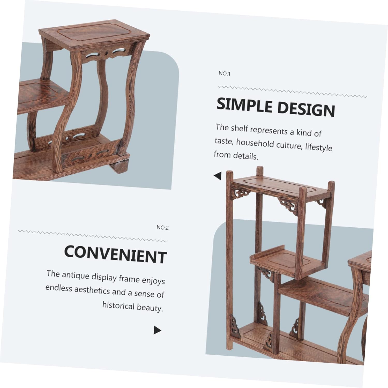 Package Include 1 x antique display rack Features - Material: Wood small curio shelf - It is suitable for your antique, adornment crafts, or other decor display shelf. - Can be used as a housewarming to your friends, they will be very happy curio stand. - Selected wood material, which is not easy to deform or break curio display stand. - The striking design is designed to accentuate the appearance of your antique rack display stand. - retro design, beautiful and generous, full of creativity, very decorative curio display stands.Goods Informationproduct display rack This stand is well-made of for and use.antique shelf decor Features smooth platform, it is suitable for your small adornment, crafts, jade stone, and other decoration.small antique wooden shelf A necessary display stand for home