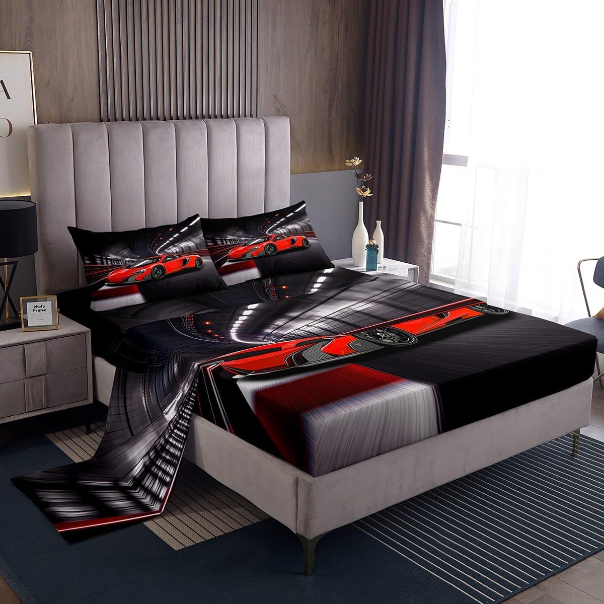 Our bed sheet is made of polyester fabric, lightweight and soft; stylish design is very suitable as room decoration for boys and girls; keep warm in winter and cool in summer; create a comfortable sleeping environment to make you fall asleep all night Range of size 1 twin fitted sheet 39 inch x 75 inch x 16 inch and 1 twin flat sheet 66 inch x 96 inch and 1 standard pillowcase 20 inch x 30 inch 1 full fitted sheet 54 inch x 75 inch x 16 inch and 1 full flat sheet 81 inch x 96 inch and 2 standard pillowcase 20 inch x 30 inch 1 queen fitted sheet 60 inch x 80 inch x 16 inch and 1 queen flat sheet 90 inch x 102 inch and 2 standard pillowcase 20 inch x 30 inch 1 king fitted sheet 78 inch x 80 inch x 16 inch and 1 king flat sheet 90 inch x 106 inch and 2 standard pillowcase 20 inch x 36 inch