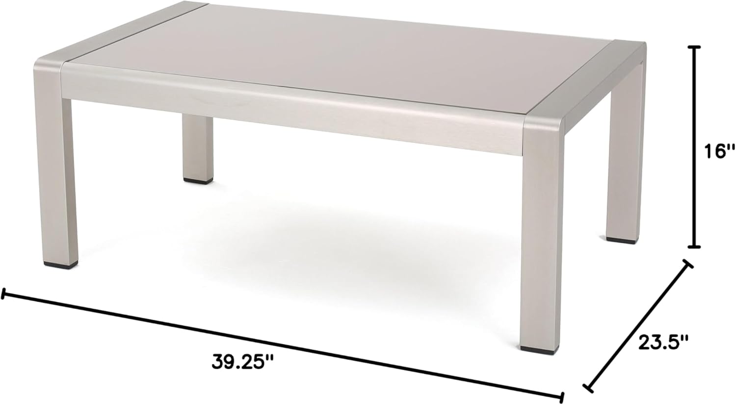 This outdoor coffee table is a stylish addition to any patio decor you currently have. Made from top quality aluminum & glass, this table is sure to Impress. Featuring smooth lines & a clean finish, this coffee table is the perfect table to have in your outdoor patio. Use it while gathered around on your couch outside, or while you host as a great place for your guest to place their drinks & small plates while they converse with one another.