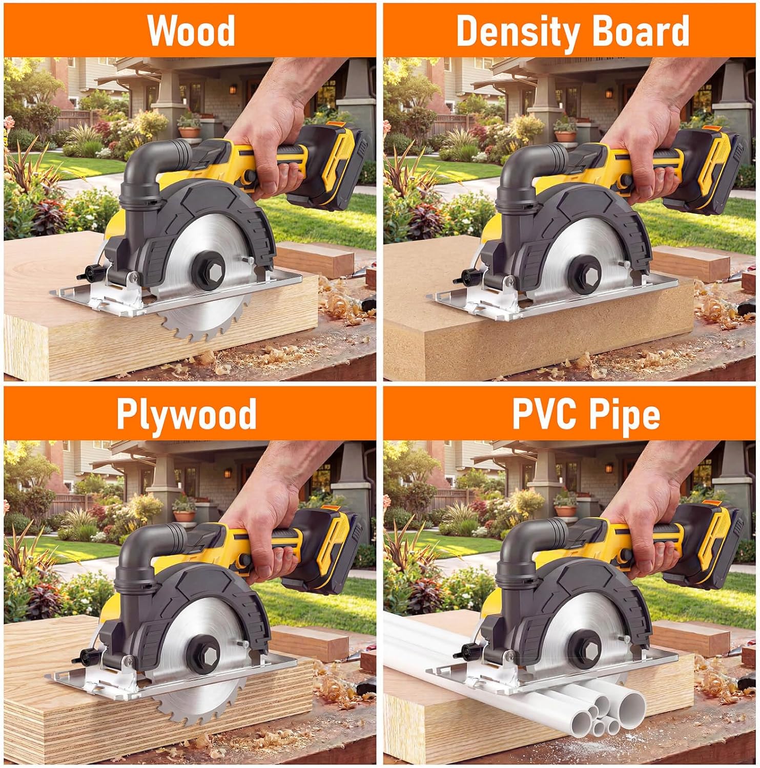 Cordless Circular Saw, Compatible with DeWalt 20V Max Battery (NO Battery) 7000RPM Brushless Motor 6-Inch Alloy Blade, 2.2"(90°), 1.5"(45°) Max Cutting Depth Lightweight 4.3Lbs for Wood PVC Cutting