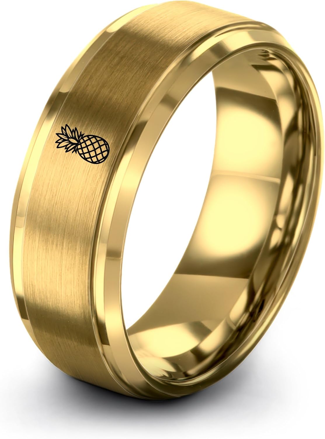 Hawaiian Pineapple style Shirt Ring - Gift for Tropical Shirt Fan - Band - Yellow Rose Gold Blue Silver - Tungsten - Flat Dome Bevel - 8mm - Anniversary Wedding - Men Women - Personalized Custom Engra