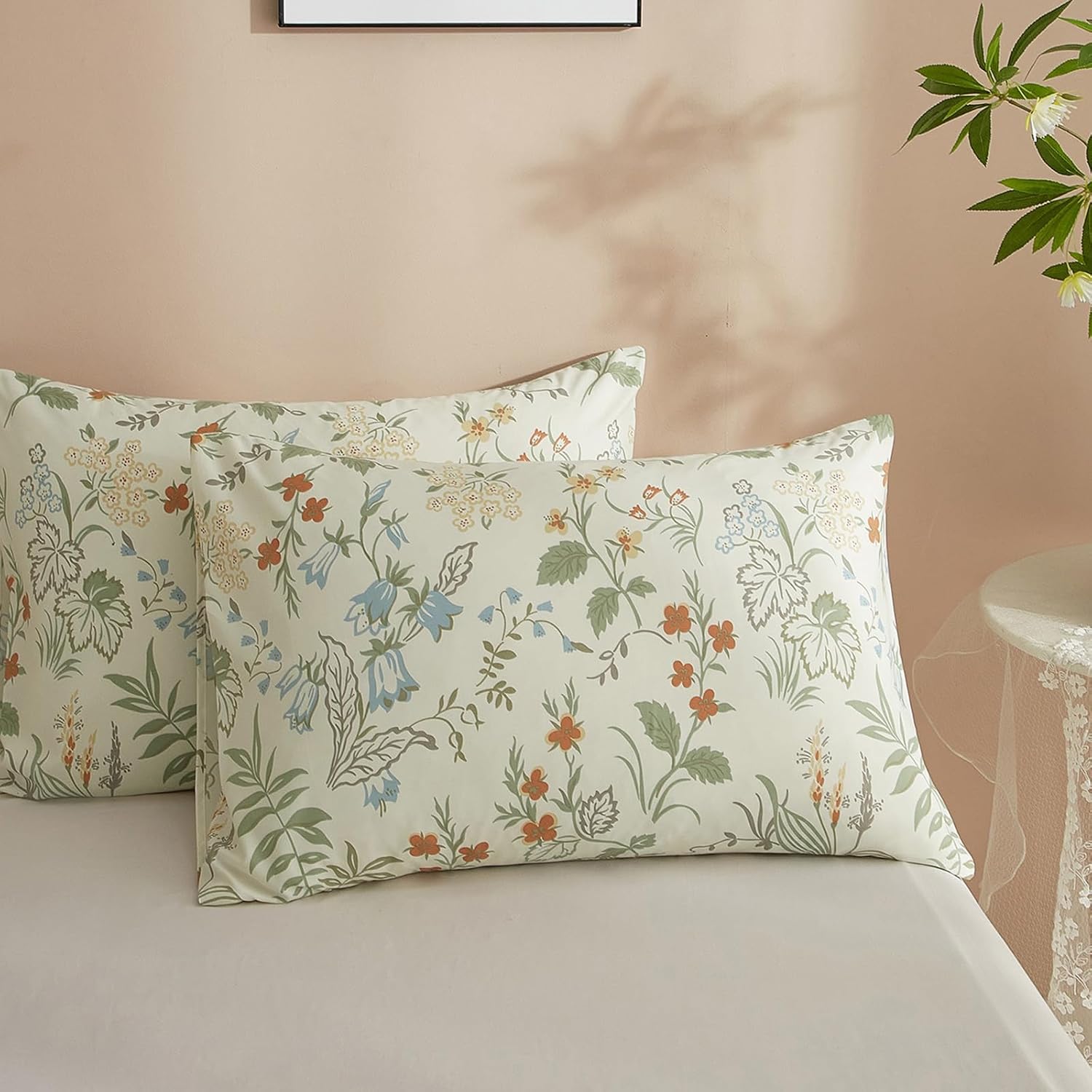 100% Cotton Floral Print Pillowcases Set 2pcs, 20'' by 26'' Boys Girls Kids Queen Decorative Pillow Cover,Set of 2,Standard,Envelope Closure Standard Pillowcase