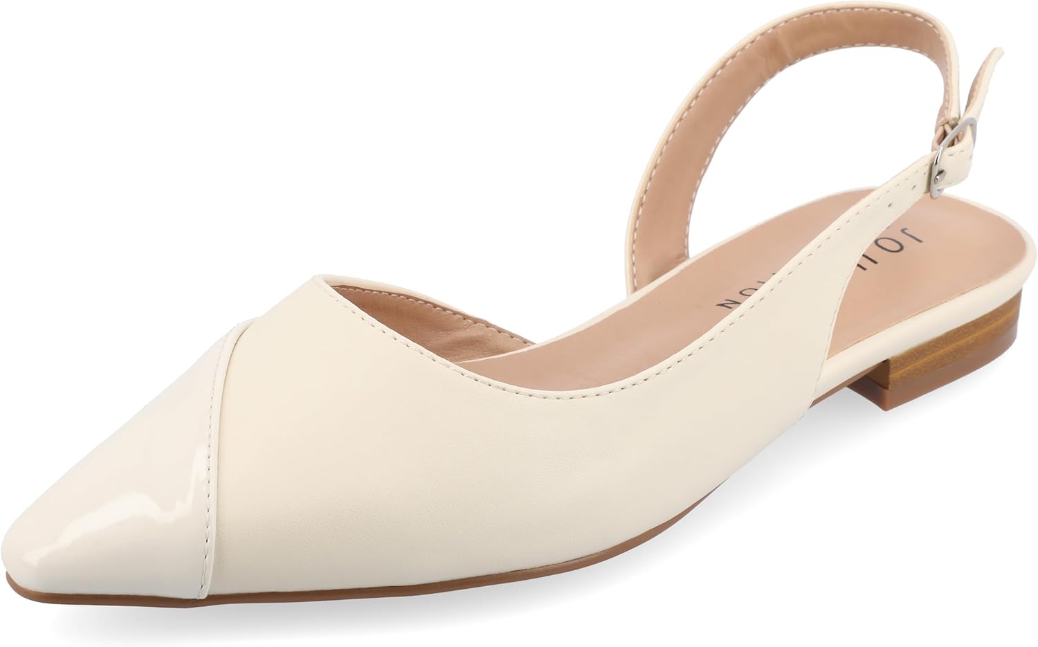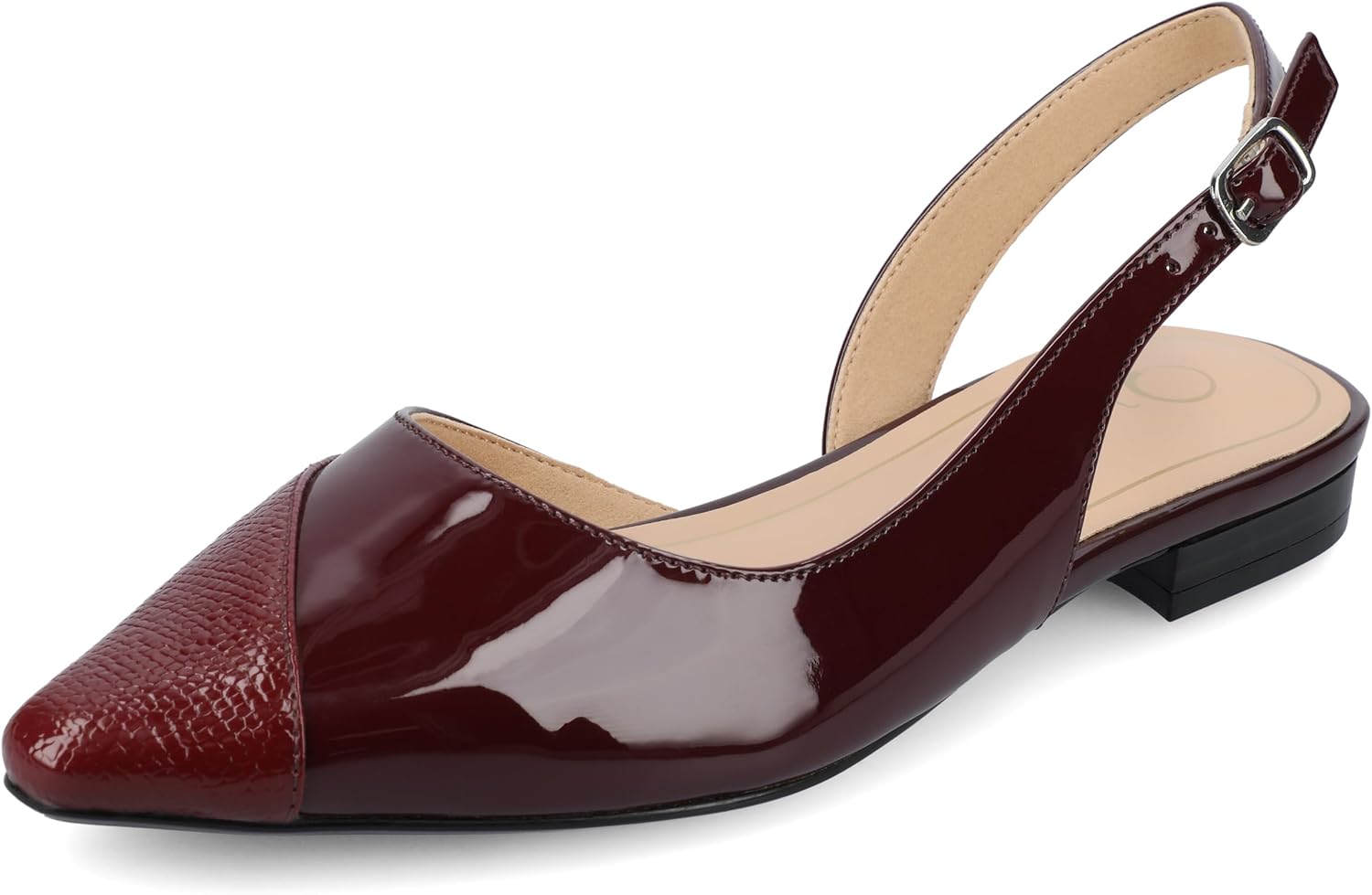 Step into sophistication with the Daphnne slingback flat from Journee, featuring a pointed-toe silhouette and chic slingback design for a touch of elegance. The flats come in either tweed fabric or faux leather uppers, providing versatile options to suit your style. With a 4 Journee Comfort System insole and a subtle 1/2-inch block heel, these slingback flats effortlessly combine fashion and comfort for a polished look. Also available in wide width.