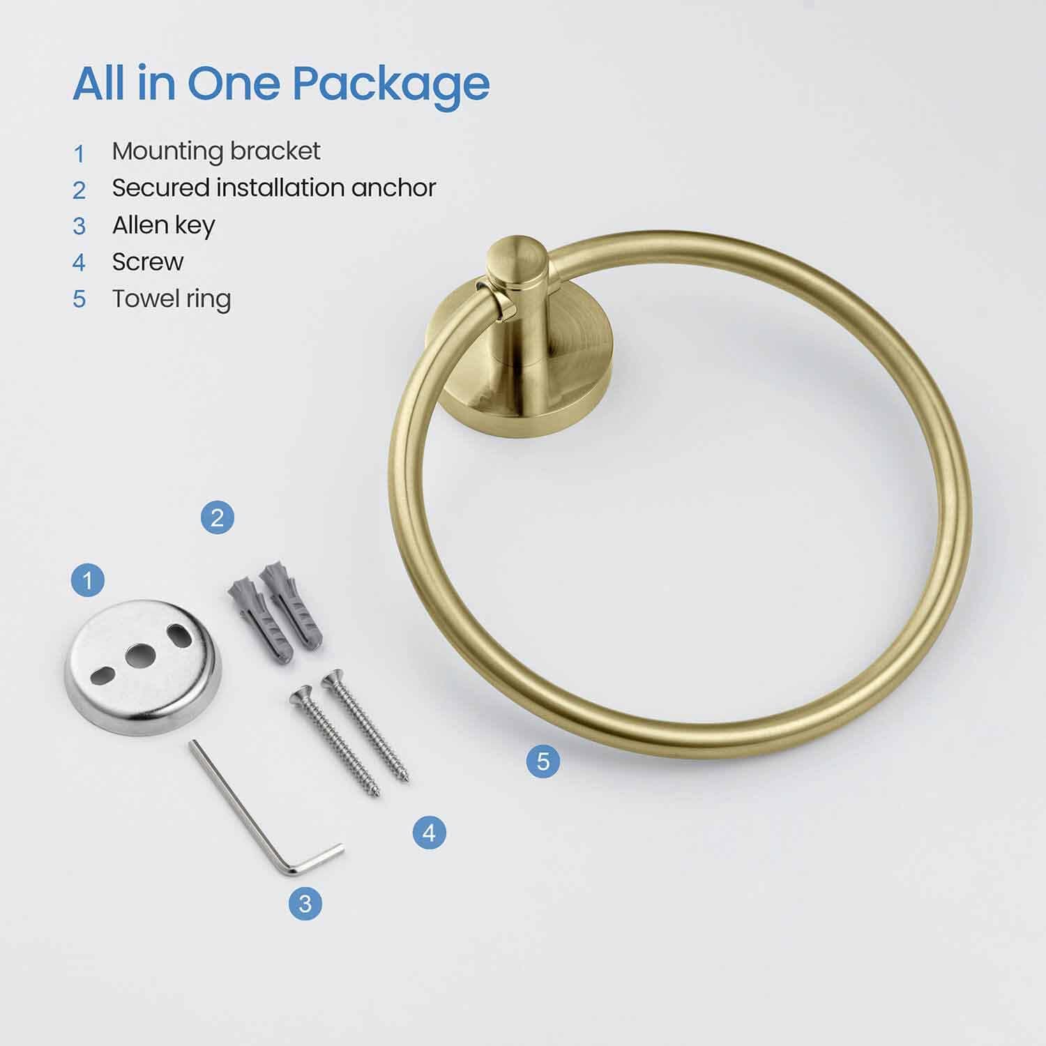 KIBI Circular Bathroom Hand Towel Ring | Wall Mounted Solid Brass Towel Holder for Bathroom and Kitchen | Space-Saving, Rust-Resistant Towel Rack with Brushed Gold Finish, KBA1406