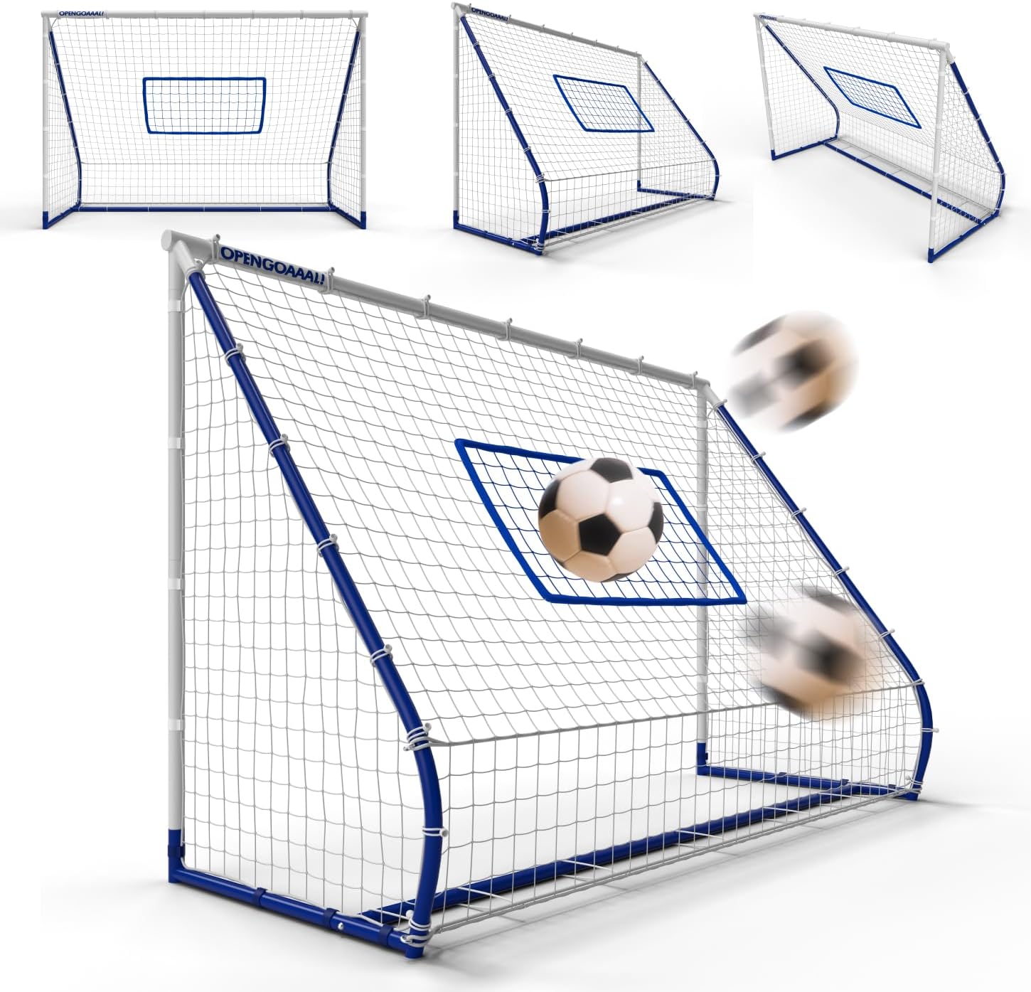 Ready to kick up some backyard fun? Meet the Open Goaaal 3-in-1 Soccer Training Rebounder & Goal Backstop Net, your new secret weapon for turning family time into soccer adventure time! This clever piece of sports equipment seamlessly combines a soccer goal, a backstop, and a rebounder all in one. Perfect for boosting your soccer games right at home, without the hassle of chasing those runaway balls. As the days get longer and the weather warms up, imagine those sunny afternoons filled with laughter, as your kids practice their soccer skills in the backyard. The Open Goaaal is perfect for soccer-loving families, allowing kids to practice their shots without worrying about balls flying over the fence. It makes soccer training a breeze and brings a professional vibe to your backyard. Used by kids aged 8-12 and beyond, it's not just for soccer. Get creative and use it for football or even hockey when the mood strikes. Its versatility makes it a must-have in your collection of soccer training equipment. Easy to set up with sturdy metal poles, it's ideal for outdoor play and can be part of your backyard accessories all year round. The netting is cleverly designed to disappear when you need an unobstructed view or are mowing the lawn. It's like having soccer equipment that's always ready for action but knows when to step aside. Whether you're hosting a mini soccer game with friends or having a casual kickabout with the family, this setup is ready to transform your backyard into the ultimate soccer playground. This 3-in-1 setup not only helps improve soccer skills but also keeps everyone engaged and active. So gather up the crew, lace up those soccer cleats, and let the games begin! With the Open Goaaal, it's not just about scoring goals; it's about making memories and building a community through the love of sports.