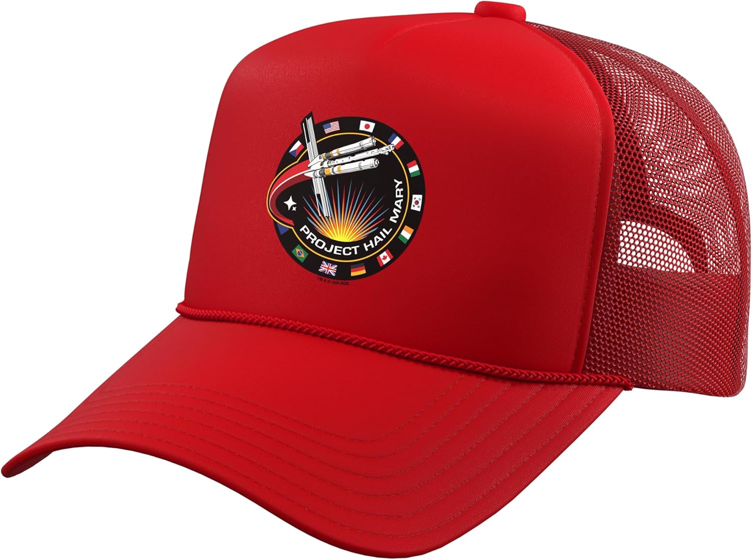 | Item Type Name | Project Hail Mary Spaceship Mission Badge Poster Trucker Hat with Adjustable Mesh Back, Black/White |