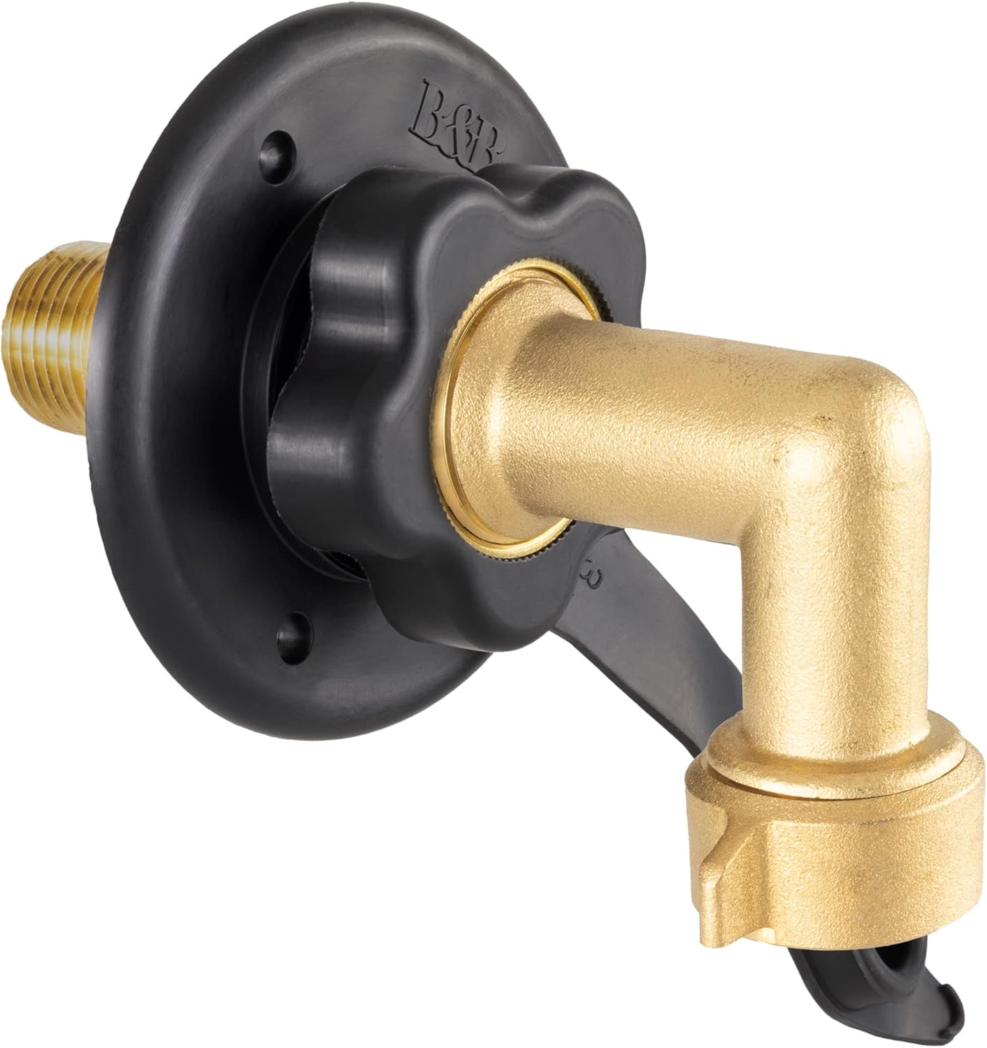 Introducing RecPro’s city water fill inlet, the perfect solution for hassle-free water tank filling on your next RV vacation. Gone are the days of struggling with multiple hoses and containers to get your tanks filled up before hitting the road. With our easy-to-use inlet, simply hook it up to a garden hose and watch as your tanks are effortlessly filled.But that's not the only benefit of our city water fill. With a built-in check valve, you can rest assured that there will be no water backflow, keeping your tanks and RV in pristine condition. Our sturdy plastic cap comes in your choice of black or white to match the style of your RV, and the brass pipe is not only durable, but also resistant to high temperatures and corrosion. Details:Connects to 3/4" threaded pipe on the outside1/2" threaded pipe on the insidePipe threads are brassFlange is 3" diameterWhite or Black parts are plasticOptional 90 Degree Elbow Details:90° pipeMade to extend the life of your hose and prevent kinks and pinchesLead-free brass pipeHighly durableDrinking water safeEasy-to-use brass hose gripperWorks with any standard garden hose fittingBuilt-in strainer to keep out dirt and debrisQuick and easy to use
