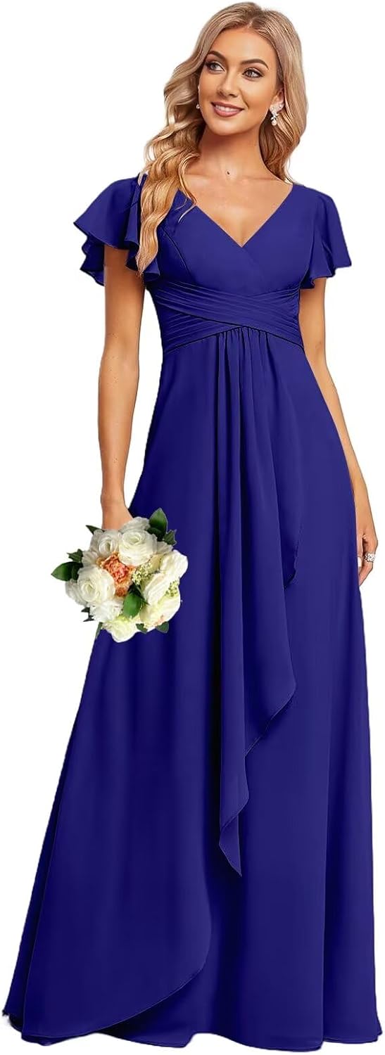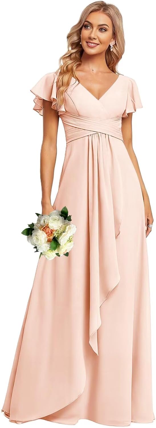 Welcome to INEWER, we are a professional dress manufacturer, all products are made of elegant fabrics.INEWER Ruffle Sleeve Chiffon Bridesmaid Dresses for Women Long V Neck Empire Waist Formal Dress with PocketsProduct Features:1.Fabric: Flutter Chiffon2.Silhouette: A Line3.Length: Floor-Length4.Neckline: V Neck5.Sleeves: Ruffle Sleeve6.Embellishment: Ruffle Sleeve, Chiffon, V Neck, Pleated, Empire Waist, Lace up Back7.Back Style: Lace up back8.Occasions: Wedding, Prom Party, Evening Party, Formal party/evening Ruffle Sleeve Bridesmiad Dresses can be customised, we can customise a dress for you according to your exclusive size. Before you customise the dress, you need to tell us. The measurement details are as follows:1.Full Bust _ inch2.Waist _ inch3.Hips _ inch4.Hollow to Floor _ inchWe also provide other customized services. If you want to modify the style of the back or add pockets, you can let us know your specific requirements.OTHERS:Due to camera quality and monitor settings, the actual colour of the V Neck Empire Waist Formal Dresses may vary slightly from the image shown on the website, we are happy to provide a colour swatch of this dress as a reference if you need to refer to the actual colour of the Flutter Chiffon Bridesmaid Dresses for Women.