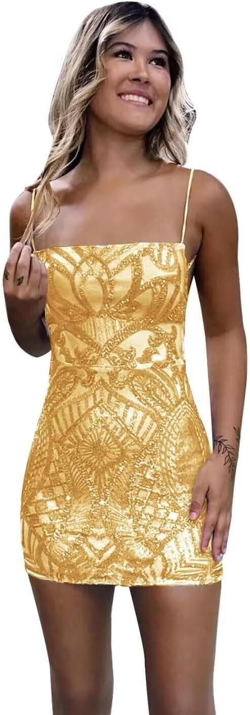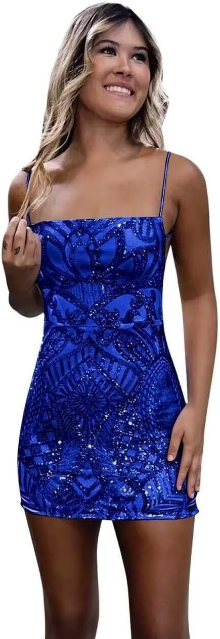 Welcome! We dedicated to provide you all kinds of prom gowns, homecoming dresses, bridesmaid dresses, wedding gowns, cocktail gowns, evening party gowns and etc. There are many colors and style for you to choose. Our dresses will make you look elegant and fashionable in a variety of formal and informal occasions. Hope you enjoy your shopping~ Sparkly Sequin Homecoming Dress for Teens Tight 2024 Spaghetti Straps Short Prom Gown Suitable for homecoming,senior prom,wedding,graduation,birthday,evening party,holiday, dance, anniversary, engagement or any other occasions, this elegant party dress will be your lovely partner~ Features of homecoming dresses: Neckline: Square Neck Fabric: Sparkly Sequin Sleeve: Sleeveless Length: Mini Length(above knee length) Silhouette: A-line Back Style: Drawstring closure Customized Size: Please select "One Size" in the size section at the time of purchase. 1.Full Bust _____ inch or ___ cm 2.Waist _____ inch or ___ cm 3.Hips _____ inch or ___ cm 4.Shoulder to Shoulder ____ inch or ___ cm 5.Hollow to floor(Shoulder to Feet without shoes) ___ inch or ___ cm 6.The height of your high heel shoes: _____inch or ___ cm 7.Arm Circumference: ____inch or cm(if the dress with sleeves) Please allow 1-3 cm differs due to manual measurement Color may have color deviation due to the different screen Display. Please check your measurements to make sure the dresses fits before placing the order Hand wash and steam pressing to remove the wrinkles due to long-distance shipping If you have any other question,please contact us freely, and we are always at your service!