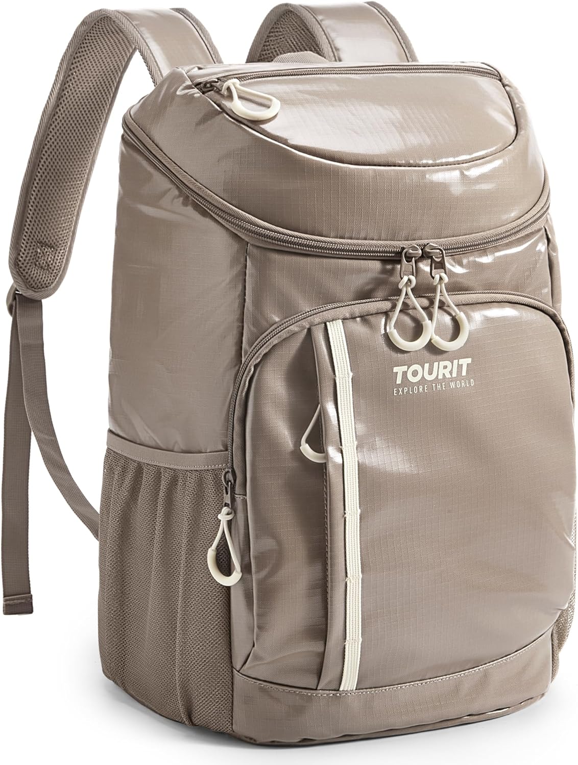 TOURIT 30 Cans Insulated Cooler Backpack for Hiking Whether you have strong interest in road/ beach trip, picnics or daily hiking, the TOURIT backpack cooler is your best partner for all types of outdoor activities. The stylish design of our insulated backpack make it also can be used as a lunch backpack or daily pack. 【Product Features】 ■Keep your food cool and safety This cooler bag for hiking choose high-density material to keep your snacks and drinks cool for 16 hours temperature below 15℃(with Freeze Packs). ■Ventilate Exterior Material Our insulated backpacks use ventilate material on the back to avoid your clothes getting wet by the condensation. ■Durable and easy to clean This camping coolers is comfy and versatile which is made of high-density tear resistant fabric with padded, adjustable straps. ■Leak resistant The inner insulation thicken foam and leak-proof liner work together to make sure anti-leaking. 【Multi Compartments】 ■The main storage compartment is large enough to provide roomy capacity for your beers, juice, sandwiches or other food. ■Two front zipper pocket can be used for your chip bags, travel wallet or other small accessories which can be easily access. ■Two bottle holders on the side that worked nice for your water or umbrella. ■There is also one mesh pocket on the strap for your Iphone 6s Plus. ■The strap on the front is perfect for your picnic pad. ■ 1 beer opener on the strap for your easily use. With this picnic backpack cooler, you can spend the idyllic day with your family, enjoying the drinking at the beach or on the boat
