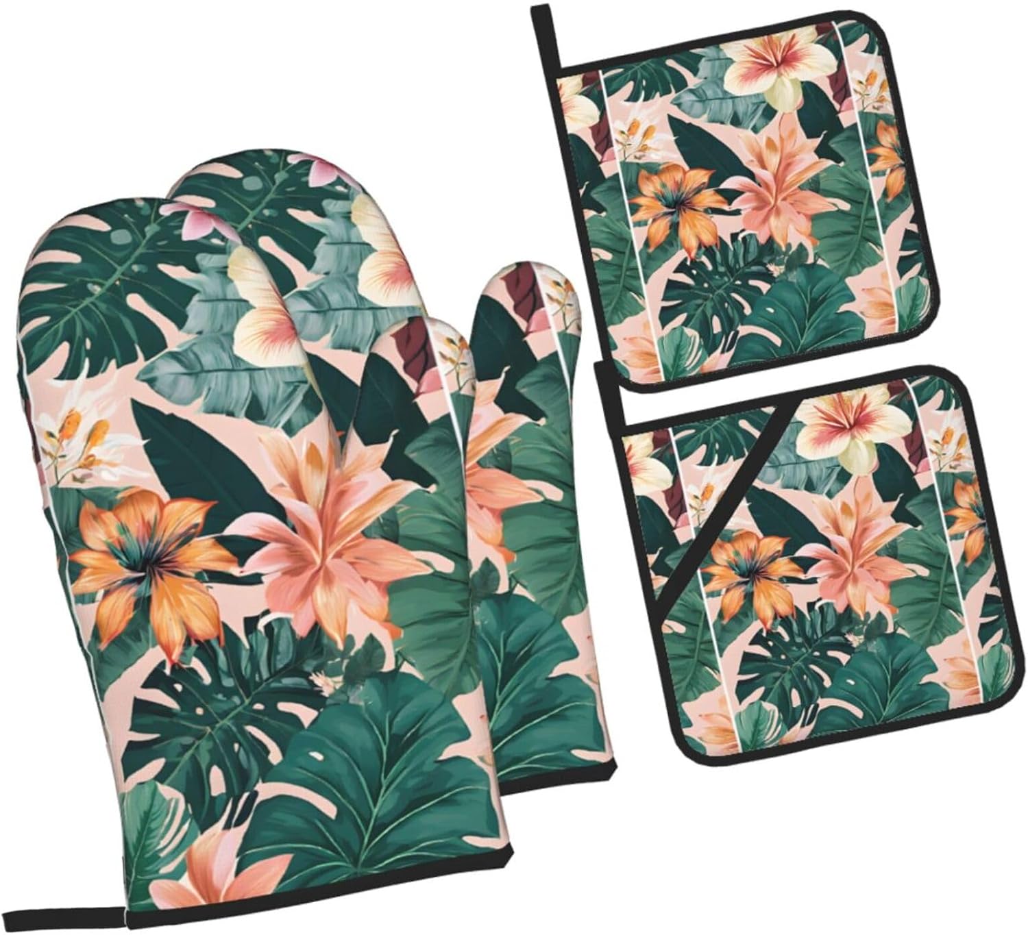 Elevate Your Kitchen Routine With This 4-Piece Baking Set: 2 Oven Mitts And 2 Pot Holders (One Pot Holder Features A Handy Pocket For Small Tools). Made From Premium Polyester Paired With Heat-Resistant Layers, It'S Thick, Durable, And Waterproof Both Inner And Outer Layers Repel Liquids, So Cleaning Is Quick And Easy.Each Piece Has A Side Hanging Loop, Letting You Store Them Neatly To Save Counter Space. The Set Offers Reliable Burn Protection, Ideal For Lifting Lids, Carrying Oven/Microwave Dishes, Or Tending To Outdoor Grills.More Than A Kitchen Essential, This Set Is A Thoughtful Housewarming Gift For New Homeowners Or Cooking Enthusiasts. Whether You'Re Baking Pastries, Cooking Meals, Or Grilling Outdoors, It Keeps You Safe, Organized, And Ready For Any Kitchen Task.