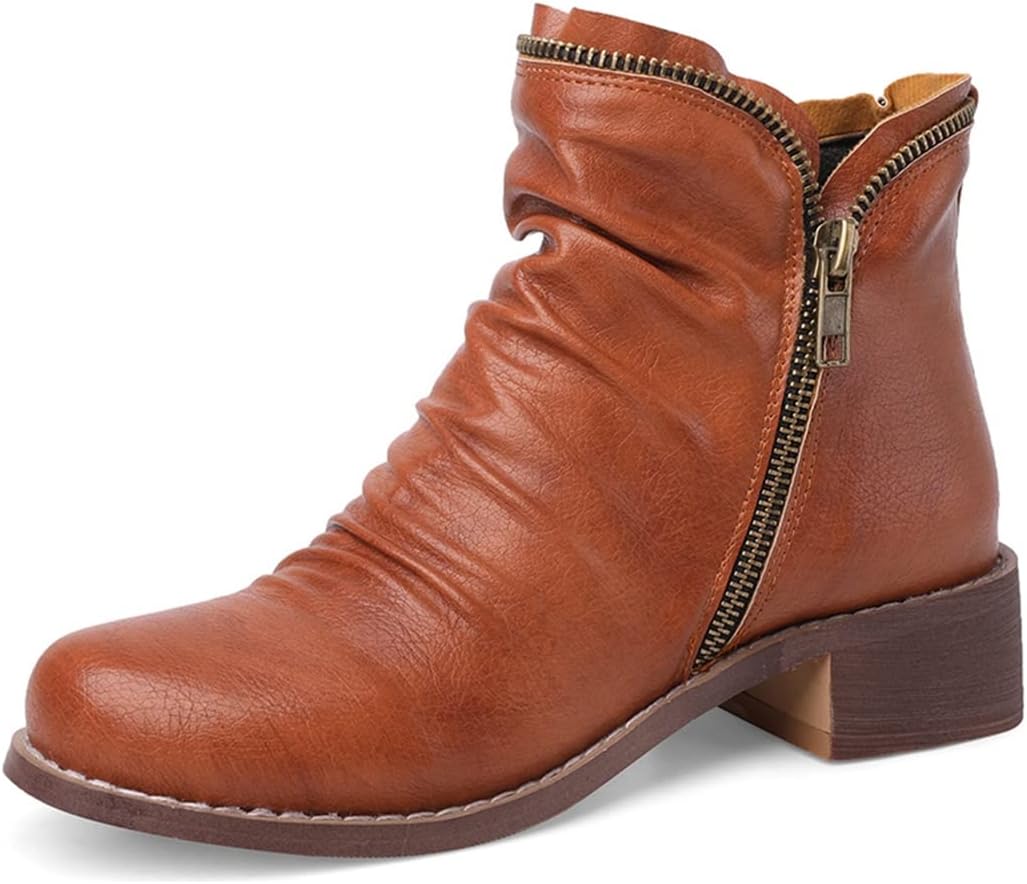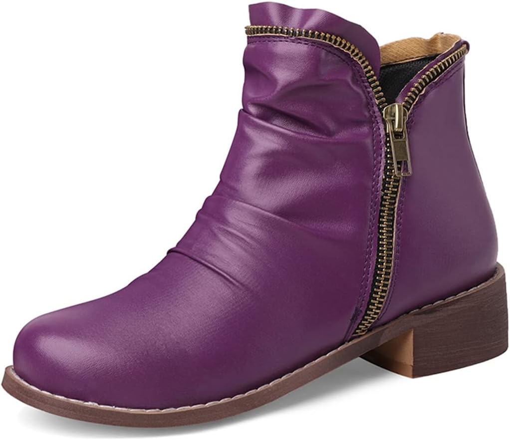 Women's Retro Flat Low Heel Dress Ankle Booties Round Toe Double Zipper Comfort Dressy Short BootsSize Chart:Size 4 US = EU34 = Heel to Toe 22.0cm/8.66"Size 4.5 US = EU35 =Heel to Toe 22.5cm/8.86"Size 5 US = EU36 = Heel to Toe 23cm/9.06"Size 6 US = EU37 = Heel to Toe 23.5cm/9.25"Size 7 US = EU38 = Heel to Toe 24cm/9.45"Size 8 US = EU39 = Heel to Toe 24.5cm/9.65"Size 8.5 US = EU40 = Heel to Toe 25cm/9.84"Size 9 US = EU41 = Heel to Toe 25.5cm/10.04"Size 10 US = EU42 = Heel to Toe 26cm/10.24"Size 11 US = EU43 = Heel to Toe 26.5cm/10.43"Use your length and width measurements to find your shoe size on the above size chart. If your foot is fat or wide, please select a bigger size up. Thank you!PERFECT ITEM FEATURES:☛Item Type: Ankle-boots☛Main Material: High Quality Leather upper; Comfort velvet Lining; Non-skid Rubber sole.☛toe_style: Round-toe☛Closure_type: Double Side Zipper☛Heel Height: Heel Height 1.18 inch☛Width: Medium (BM)☛Season: Spring/Autumn/Winter☛Color: Multiple colors optional☛Occasion Lifestyle: Fashion,Classic,Casual.