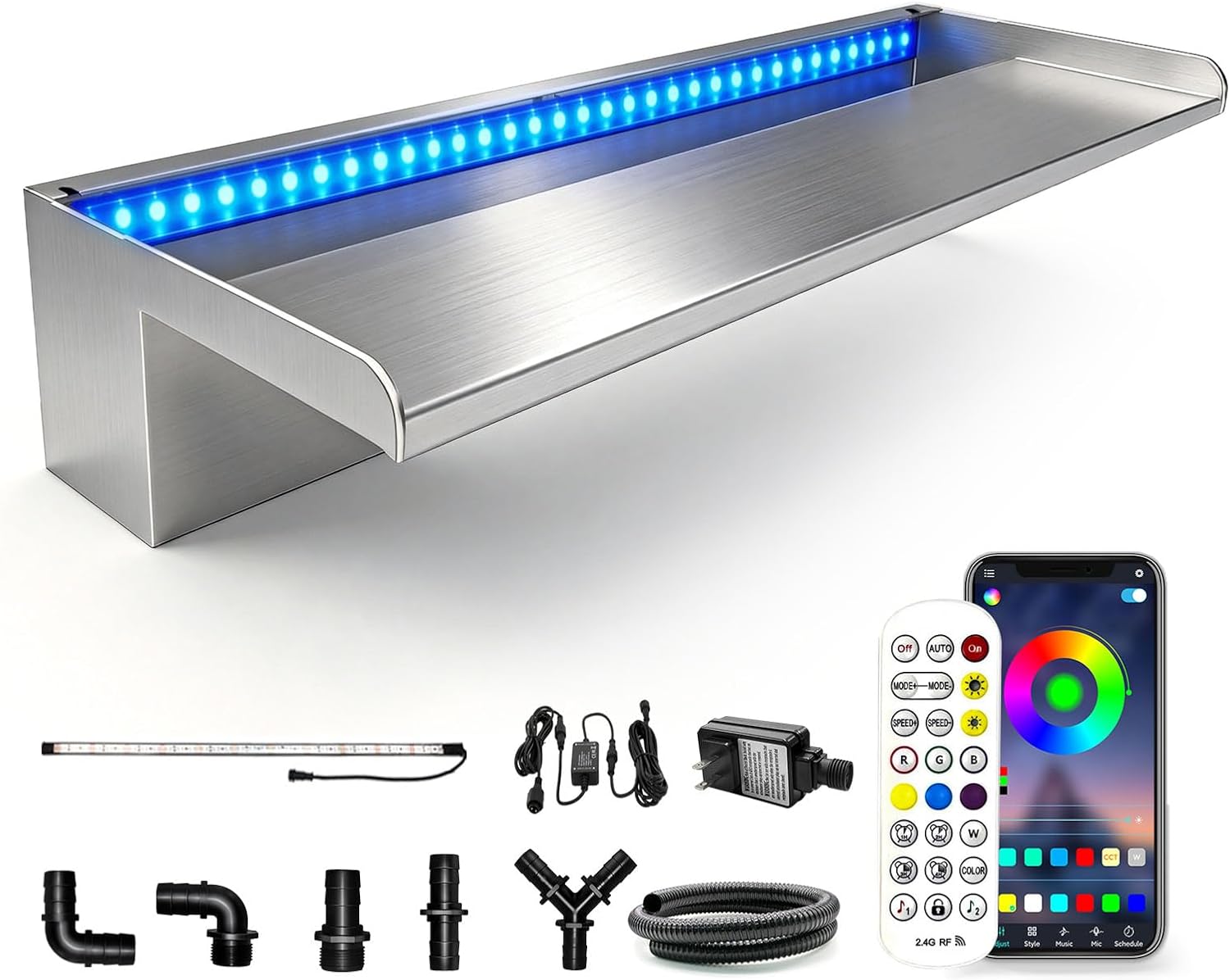 With lid Waterfall Pool Fountain, LONGRUN Stainless Steel Waterfall Spillway for Pools and Ponds - 11.8" Wide Decorative Water Feature for Swimming Pools, Koi Ponds and Garden