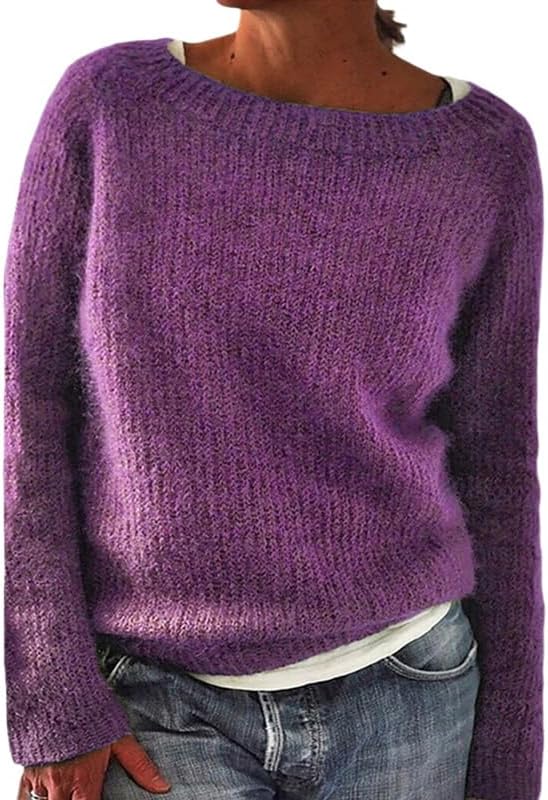 Cobiako Women's Crewneck Sweaters Classic Relaxed Fit Casual Fall Fashion Long Sleeve Knitted Pullover Sweater Business
